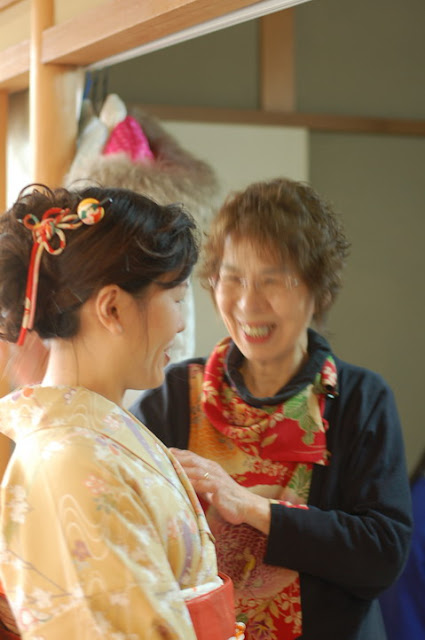 到了染匠,歸還和服前,婆婆很三八的要我們擺姿勢拍照,她們也很樂在其中 ^_^